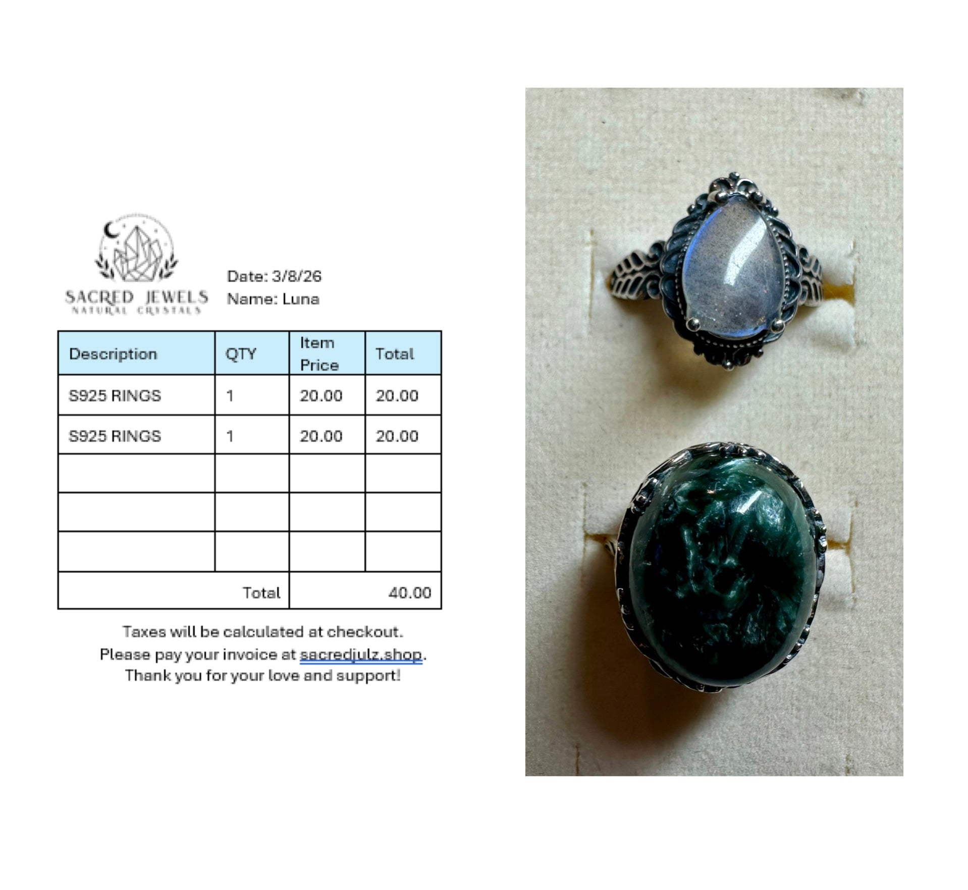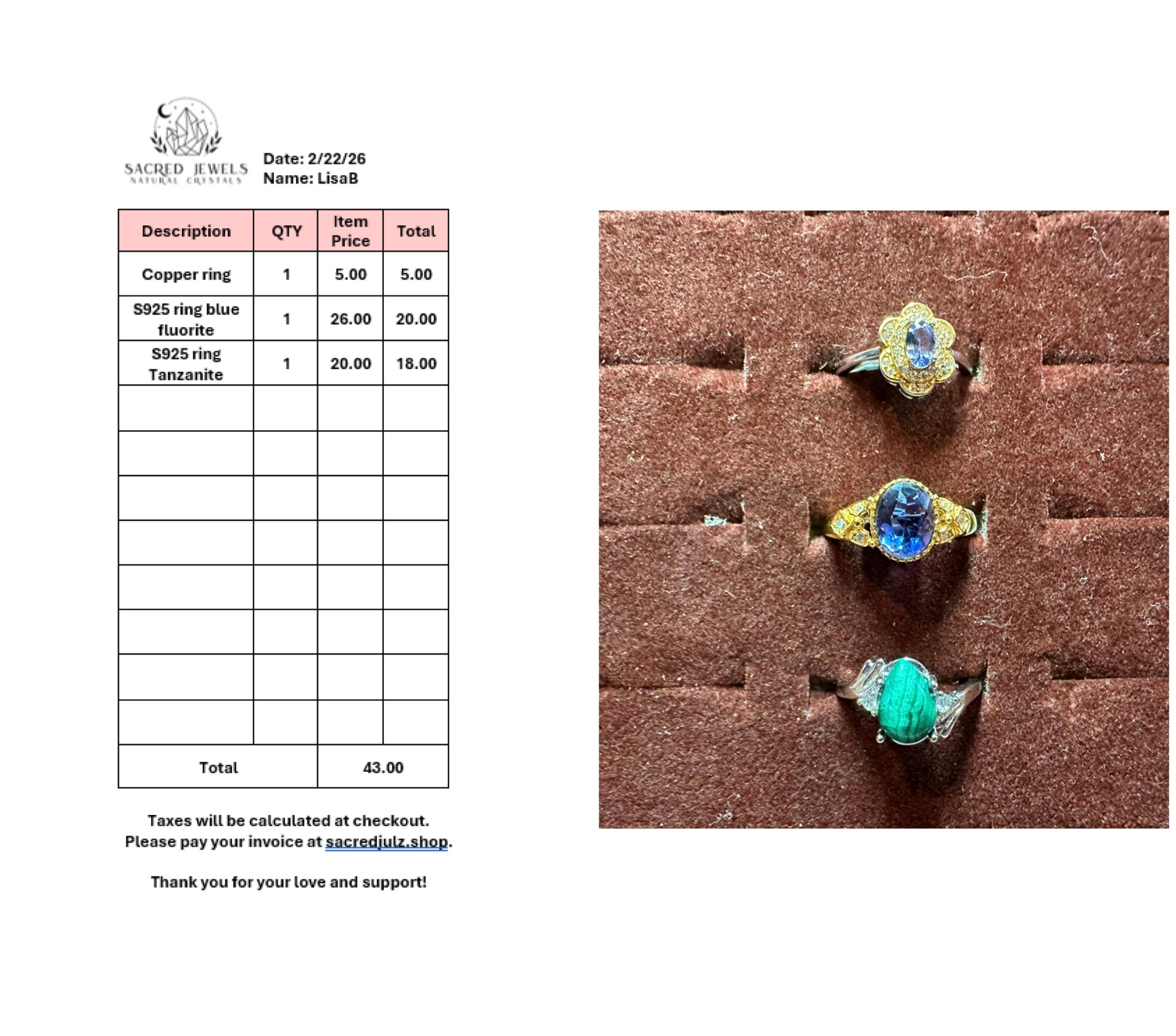 Checkout Link for Sacred Jewels Tiktok Lives